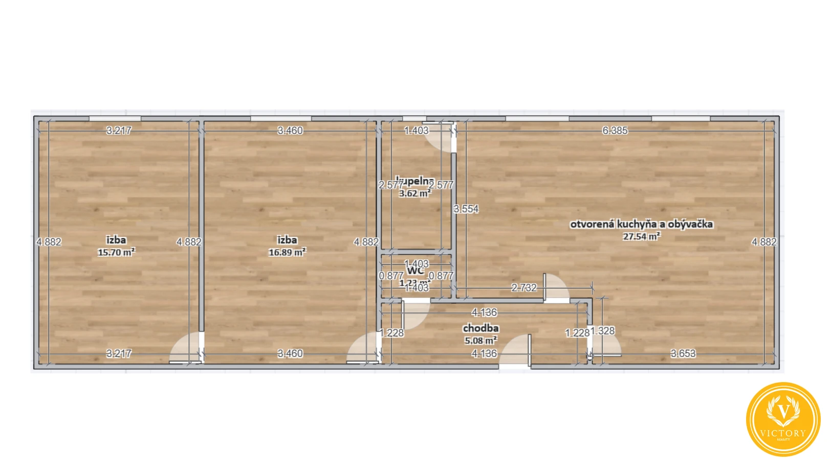 Byt má atypickú a vzdušnú dispozíciu, ktorá vznikla odstránením priečky medzi dennou časťou: